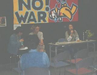後半は、志葉玲さんとともに活躍していたWorld Peace Nowの星野ゆかさん、内山隆さんを交え、東京、そして日本全国に広がったピース・アクションを振り返りました。今後の活動の緊急課題は有事法制。「NO ユージ VIVA 友情」キャンペーンの説明をして頂きました。